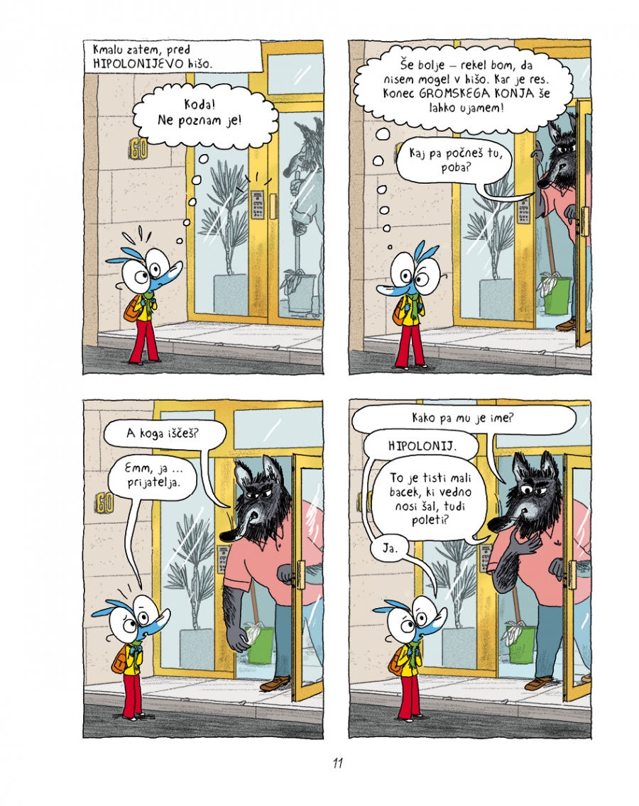 Hipolonij, najbolj bolan bacek v Ariolovem razredu, spet zboli (kakšno presenečenje!). Učitelj Top zadolži Ariola, da mu odnese naloge, in to ravno po šoli, ko je na programu Gromski konj. Ariol se poskuša izmazati, a mu to na njegovo veliko razočaranje ne uspe, in tako imamo prvič priložnost spoznati vedno zaskrbljeno Hipolonijevo mamo in njihov brezbacilni dom. Z babico Danico pa smo se že srečali in kot vselej je tudi tokrat zelo dramatično. Najprej Ariola zvleče v lutkovno gledališče, ki ji vzame sapo v vseh pogledih: uboga babica se med navdušenim ploskanjem in neumornim snubljenjem gospoda Von Manirlicha skoraj zaduši, kasneje pa z Ariolom obišče še prijateljico Žano v bolnišnici. Težko si je predstavljati, koliko drame lahko sproži tak obisk, če je v sobi poleg polomljene žabe še uboga (a samo v spanju) hrzajoča kobila. Ariol in Ramono tokrat zaigrata v čisto pravem filmu o vitezih, četudi se pustolovščina ne konča ravno tako viteško, kot sta si prijateljčka predstavljala. Ne umanjkajo niti klasične morske pustolovščine pri nonotu in noni, rojstnodnevne svečke in smetana ter bližnje srečanje Ariolovih očal s straniščem. Tokratni zmagovalni citat pa pripada Ramonu, ko ta presenečen ugotovi: To je prvič, da se nekomu zdim premalo svinjski!