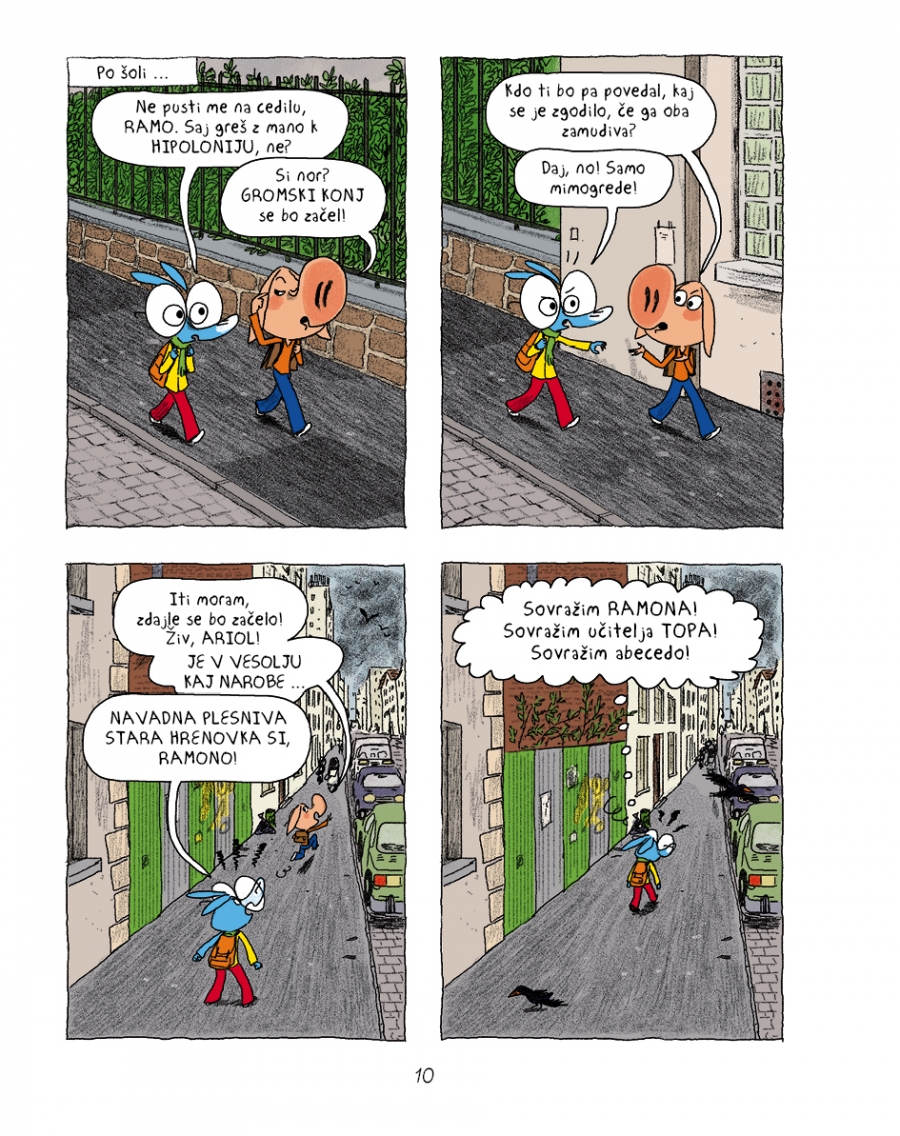 Hipolonij, najbolj bolan bacek v Ariolovem razredu, spet zboli (kakšno presenečenje!). Učitelj Top zadolži Ariola, da mu odnese naloge, in to ravno po šoli, ko je na programu Gromski konj. Ariol se poskuša izmazati, a mu to na njegovo veliko razočaranje ne uspe, in tako imamo prvič priložnost spoznati vedno zaskrbljeno Hipolonijevo mamo in njihov brezbacilni dom. Z babico Danico pa smo se že srečali in kot vselej je tudi tokrat zelo dramatično. Najprej Ariola zvleče v lutkovno gledališče, ki ji vzame sapo v vseh pogledih: uboga babica se med navdušenim ploskanjem in neumornim snubljenjem gospoda Von Manirlicha skoraj zaduši, kasneje pa z Ariolom obišče še prijateljico Žano v bolnišnici. Težko si je predstavljati, koliko drame lahko sproži tak obisk, če je v sobi poleg polomljene žabe še uboga (a samo v spanju) hrzajoča kobila. Ariol in Ramono tokrat zaigrata v čisto pravem filmu o vitezih, četudi se pustolovščina ne konča ravno tako viteško, kot sta si prijateljčka predstavljala. Ne umanjkajo niti klasične morske pustolovščine pri nonotu in noni, rojstnodnevne svečke in smetana ter bližnje srečanje Ariolovih očal s straniščem. Tokratni zmagovalni citat pa pripada Ramonu, ko ta presenečen ugotovi: To je prvič, da se nekomu zdim premalo svinjski!